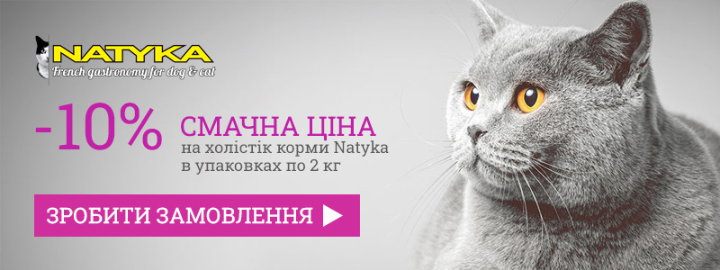 -10% ЗНИЖКА НА ВСІ КОРМИ ДЛЯ КІШОК NATYKA