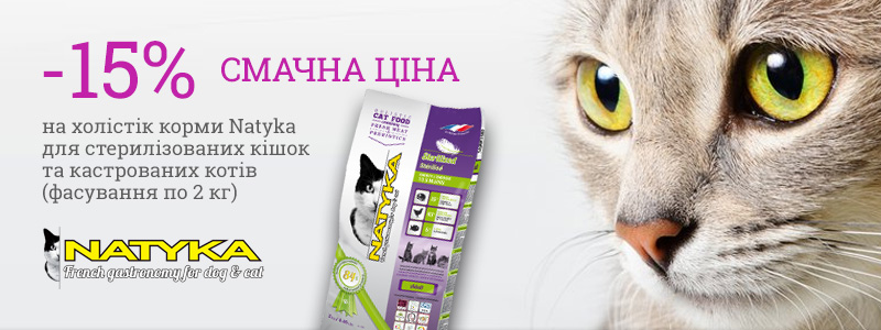Детальніше-10% ЗНИЖКА НА ВСІ КОРМИ ДЛЯ КІШОК NATYKA